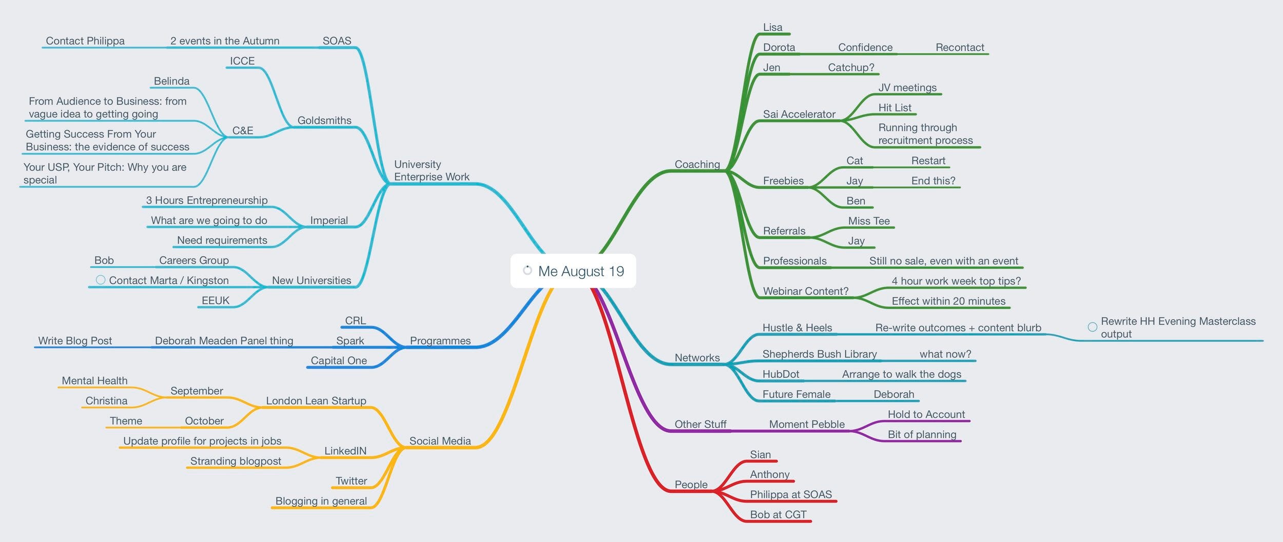 This is the busiest bit, because now everything is reflected on my MindMap. I like to colour code things together.